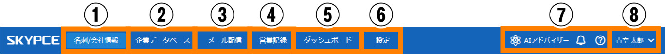 | ① | 名刺 / 会社情報 | 名刺情報の登録や閲覧、名寄せなどができます。また、会社情報の閲覧もできます。 | 参照 | |