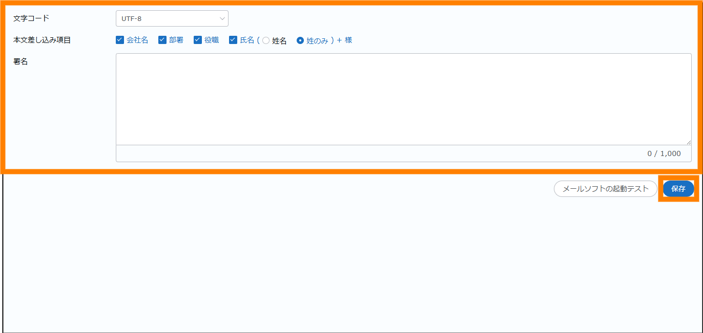 | 署名 | 本文に追加する署名が入力できます。 | ||