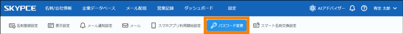 「SKYPCE(名刺管理)」へのログイン時に使用するパスワードを変更します。