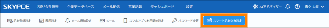 ② 「スマート名刺交換設定」をクリックする。