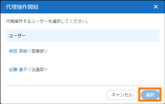 ② 委任者を選択し、[選択]ボタンをクリックする。