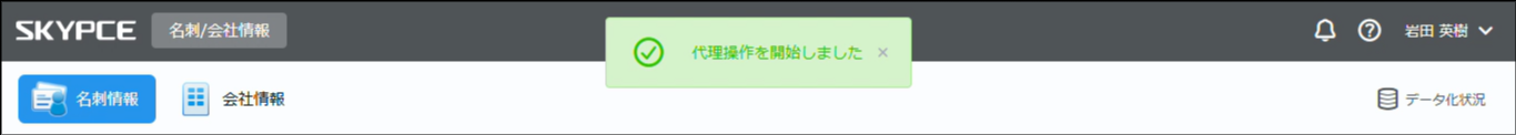 代理操作が開始されると、画面にメッセージが表示され、ログイン中のユーザー名に委任者の名前が表示されます。