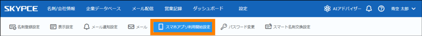 | ⑤ | スマホアプリ利用開始設定 | 「SKYPCE(スマートフォンアプリ)」の利用開始に関する設定ができます。 | 参照 |