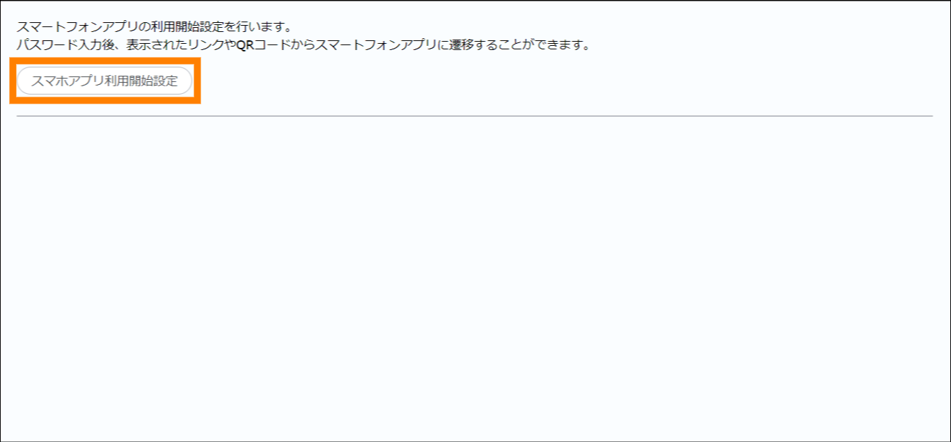 ② 「スマホアプリ利用開始設定」をクリックする。