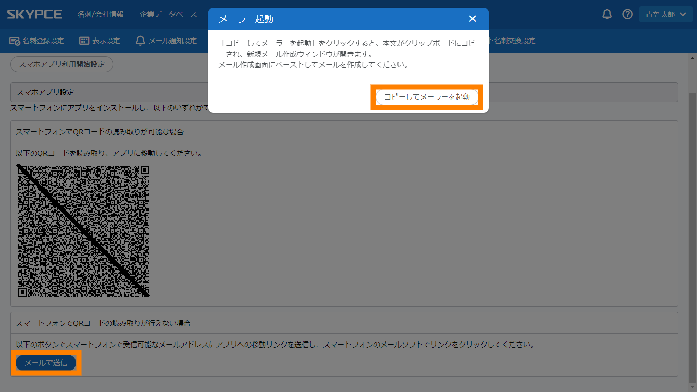 名刺登録に関する設定が適用されます。