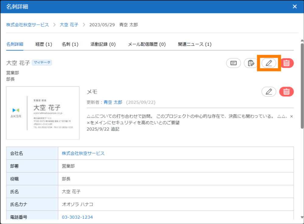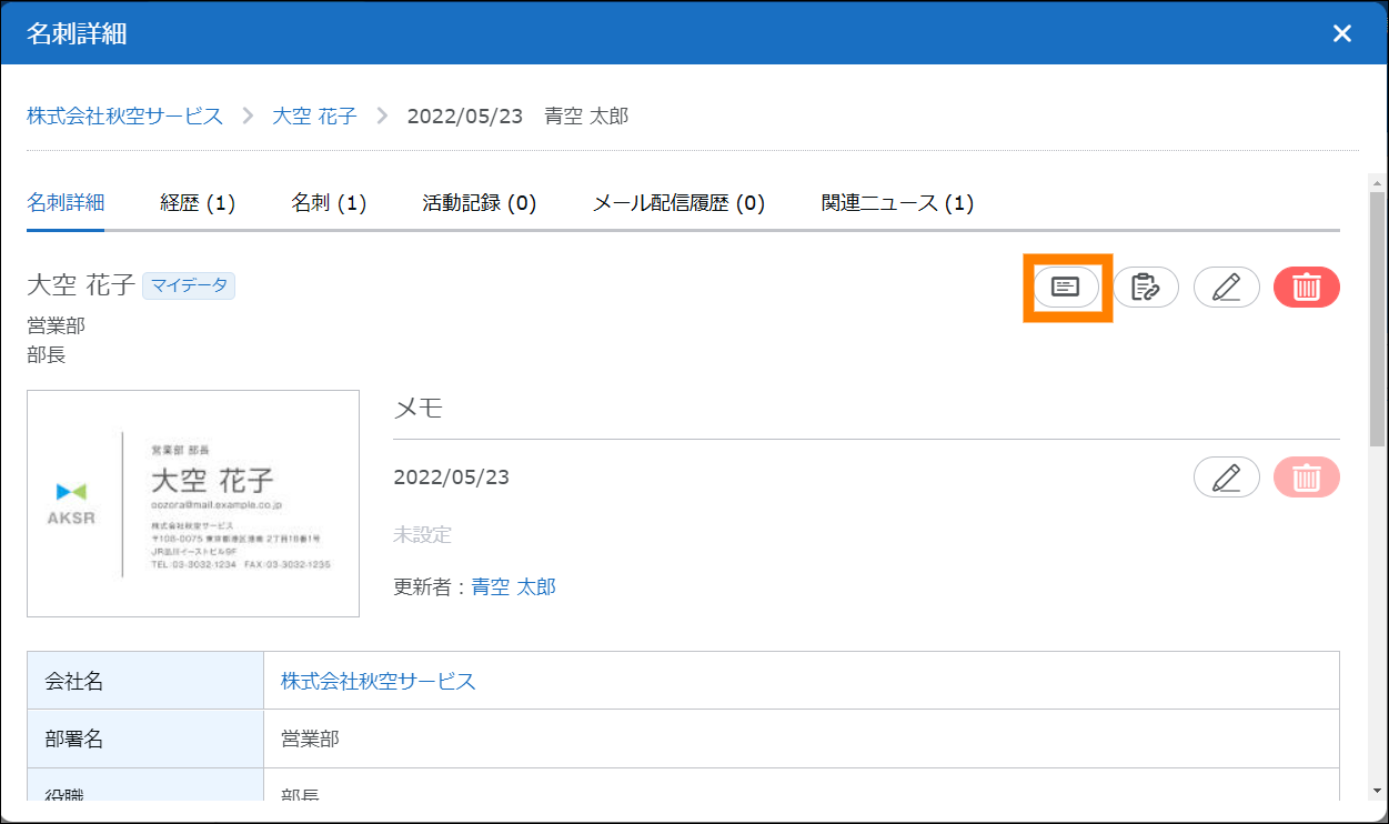 「名刺情報」画面が表示されます。