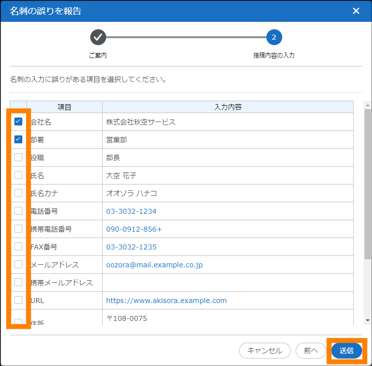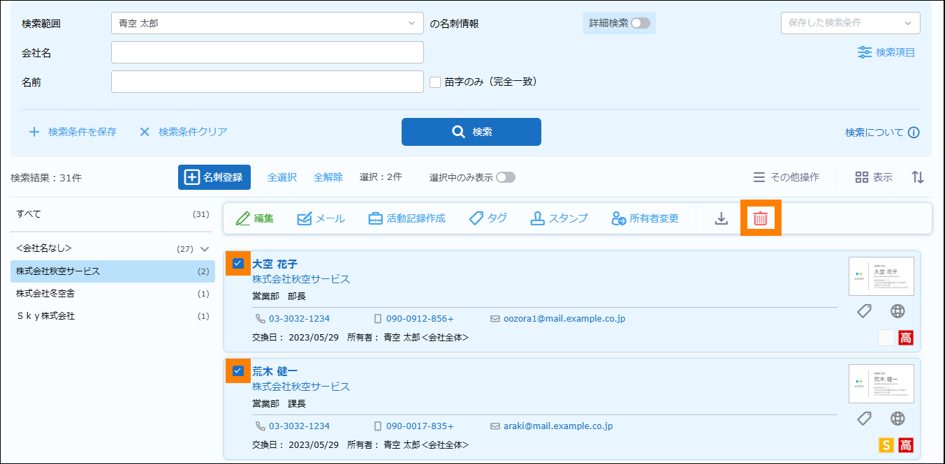 名刺の一括削除ができます。 | 参照 | |
