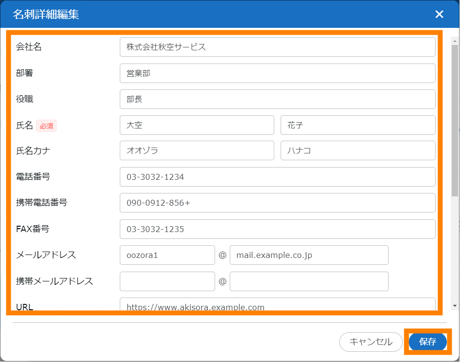 「名刺情報」画面の説明は、次のとおりです。