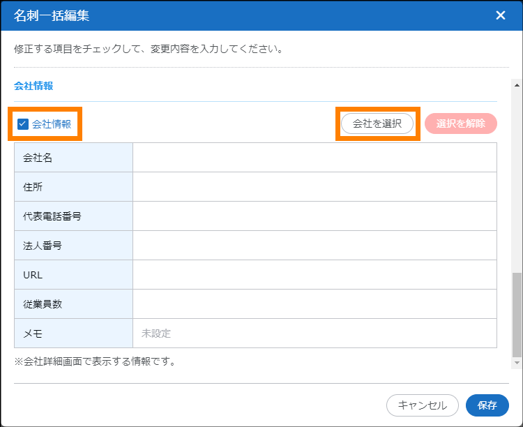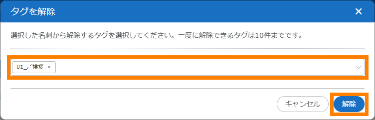 | 全解除 | クリックすると、⑥で選択されている名刺がすべて解除されます。 | ― | |