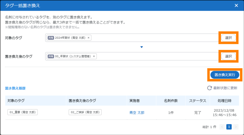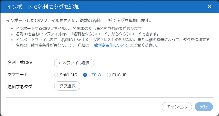 | インポートで名刺にタグを追加 | 参照 |