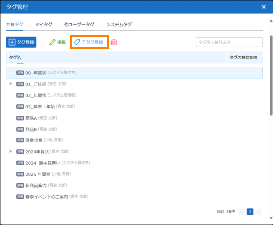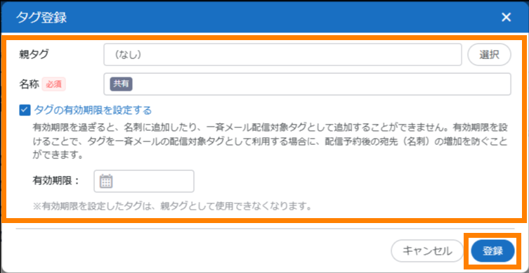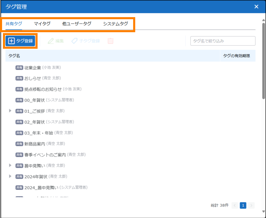 | タグ | タグの追加や編集、削除などができます。 | 参照 | |
