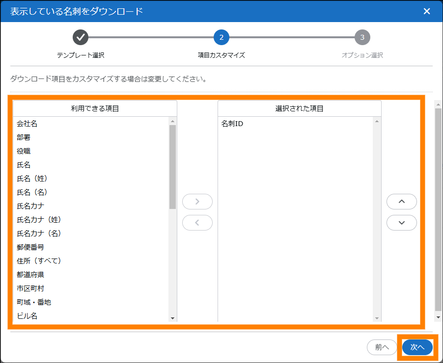 名刺を選択して名刺情報のダウンロードができます。 | 参照 | |