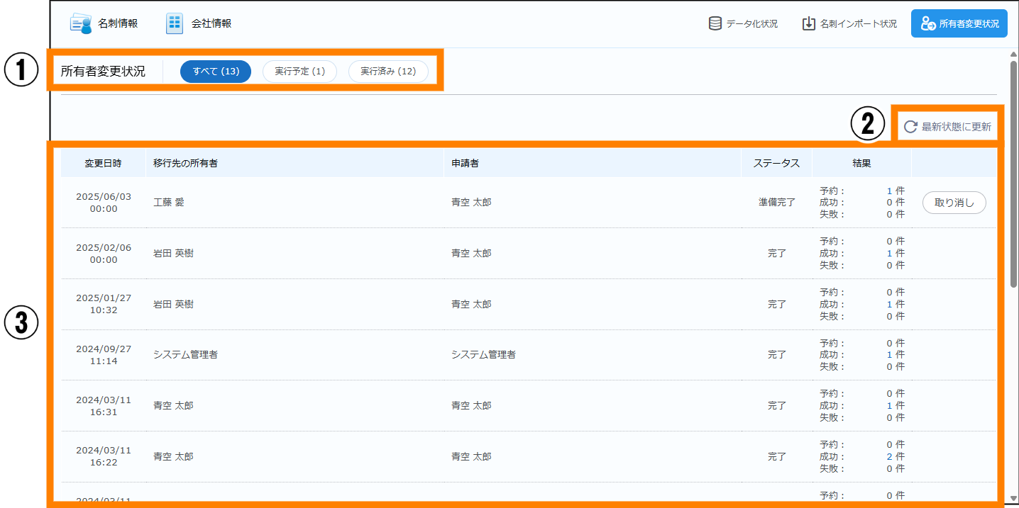 | ⑤ | 所有者変更状況 | 所有者変更の状況が確認できます。 | 参照 |