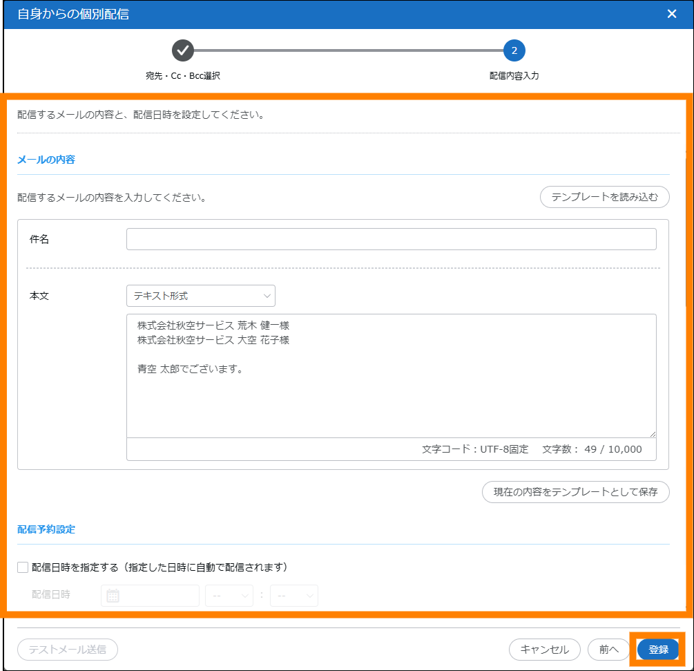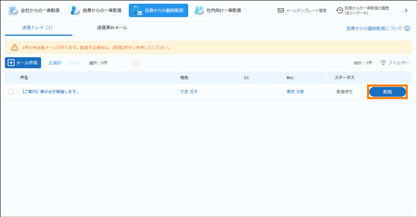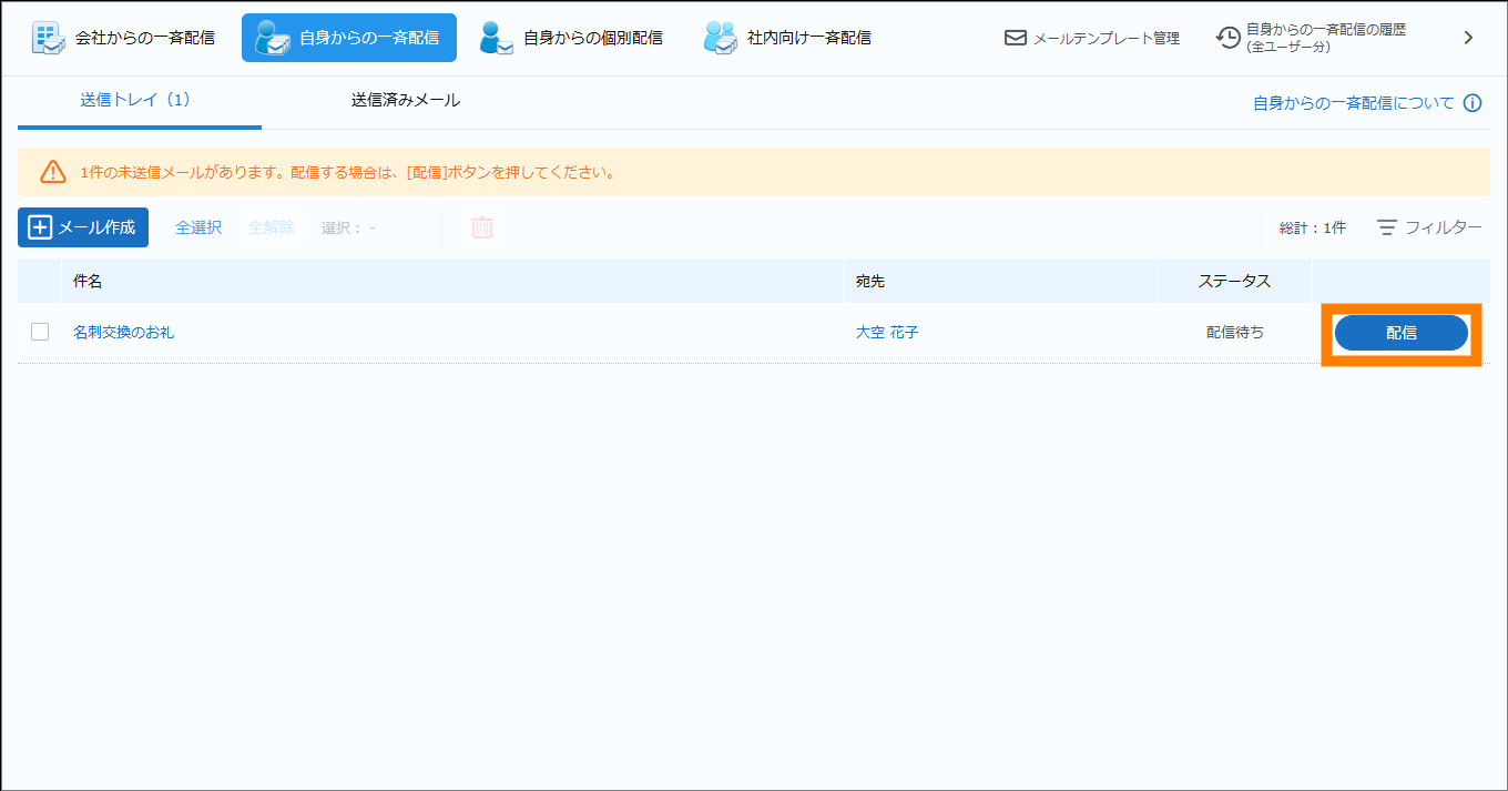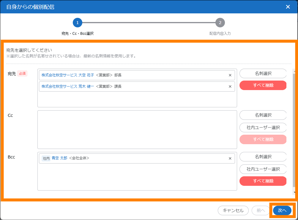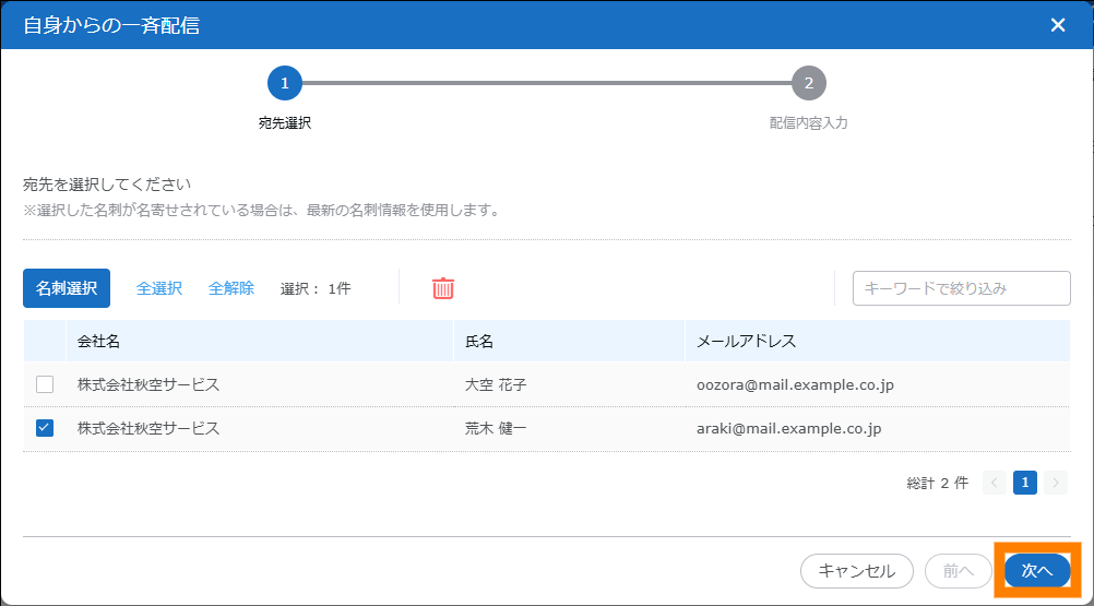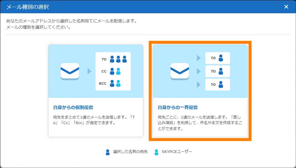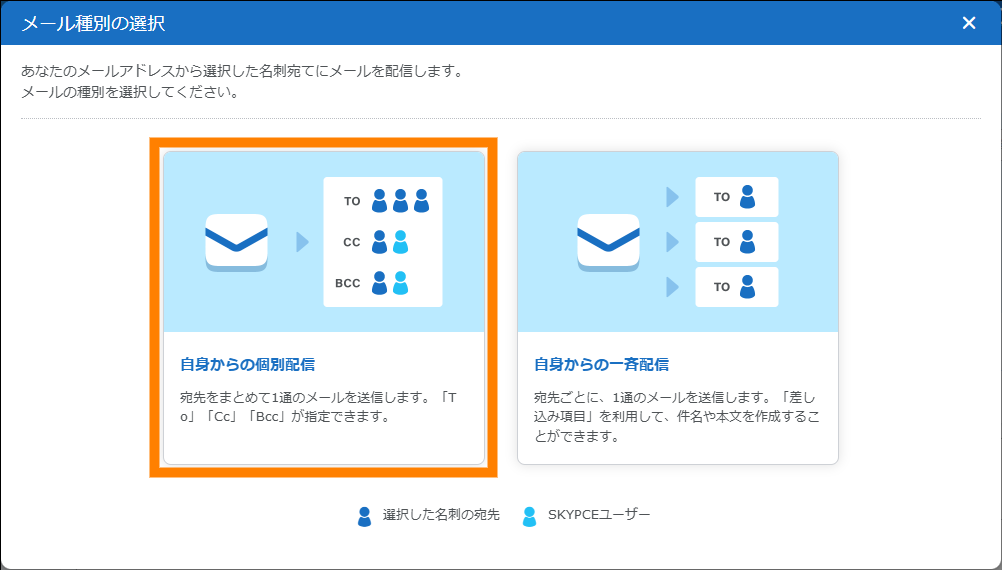 | メール | 名刺を選択してメール配信ができます。 | 参照 | |
