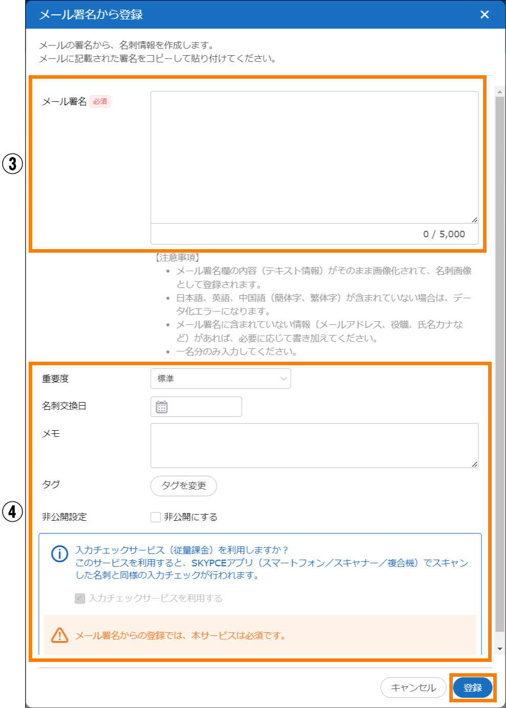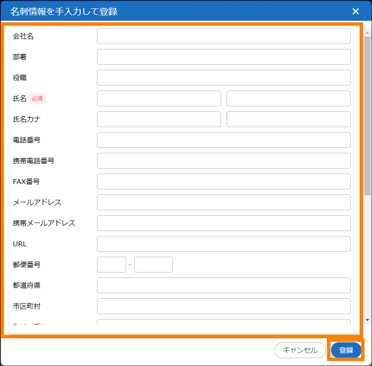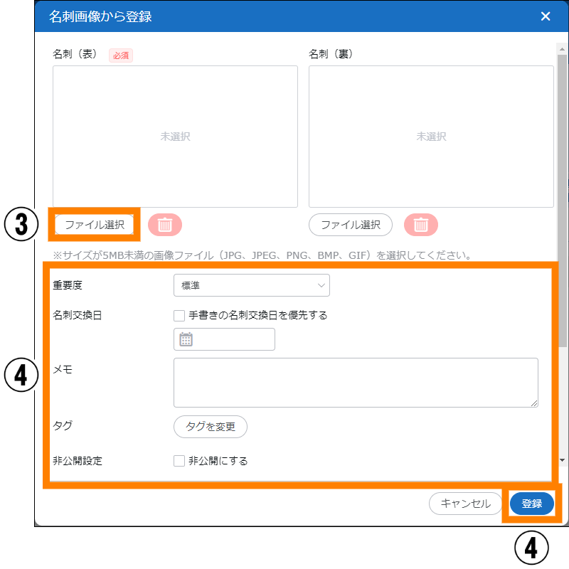 | ② | 名刺登録 | 名刺情報の登録ができます。 | 参照 |