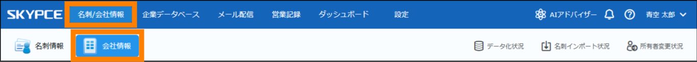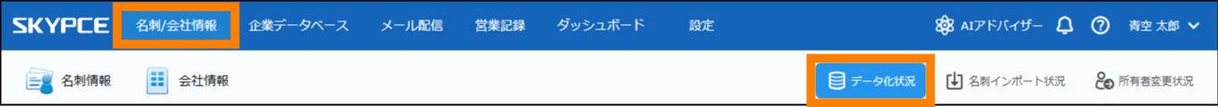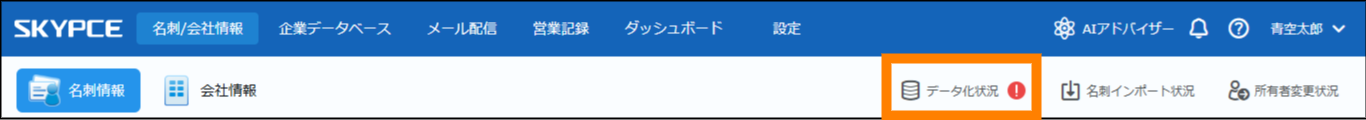 ① 「名刺 / 会社情報」をクリックし、「データ化状況」をクリックする。