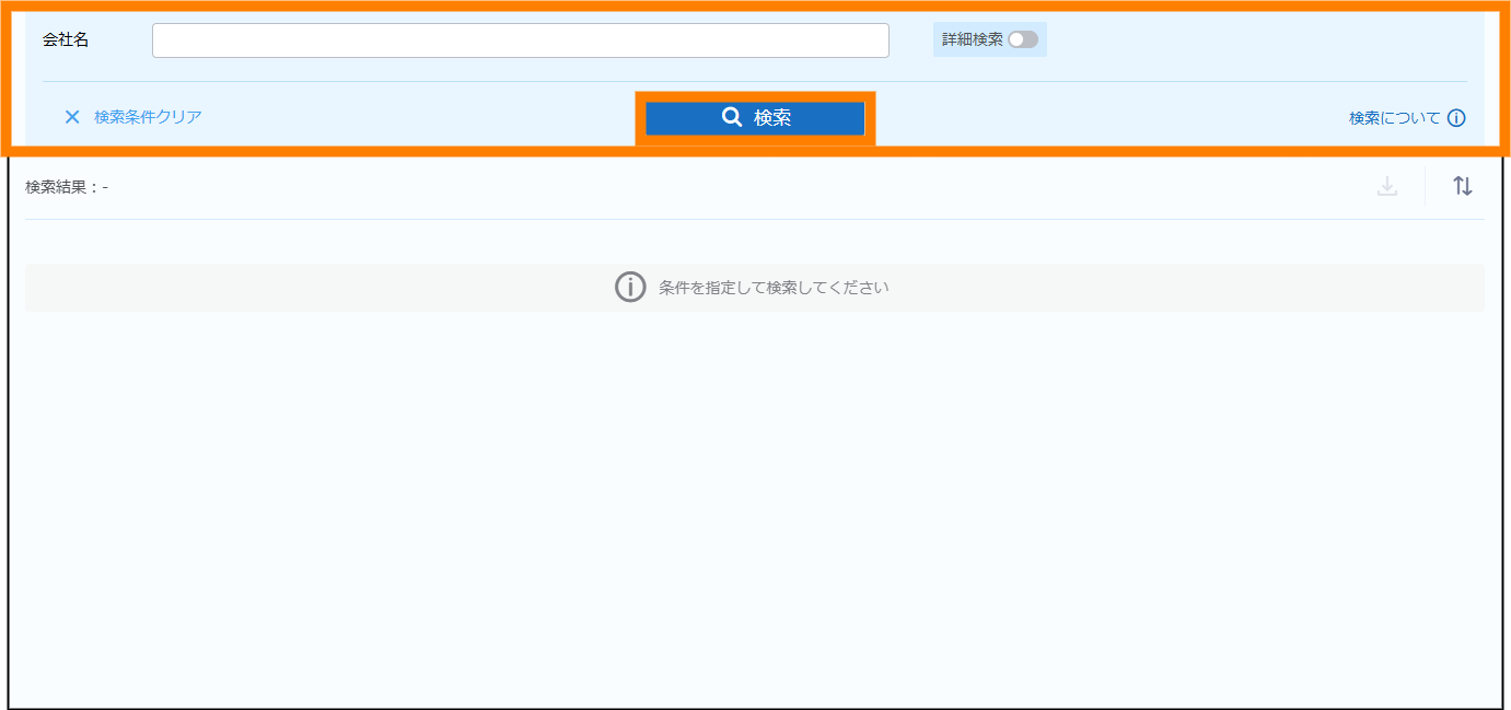会社情報を検索・閲覧します。会社情報は、会社名の一部を入力することで検索できます。また、詳細検索を使うことでさらに検索結果を絞り込むことができます。