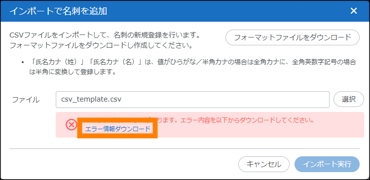- エラーの発生したデータを削除する場合は、対象のデータにチェックを入れ、
