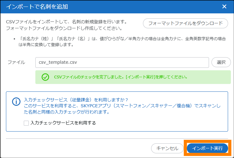 | インポートで名刺を追加 | 参照 |