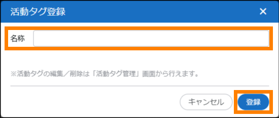 活動タグを新規登録します。登録済みの活動タグを編集、削除することもできます。