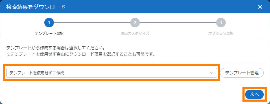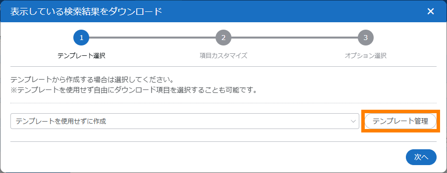 - テンプレートを使用するとダウンロードする項目の初期状態が設定できます。