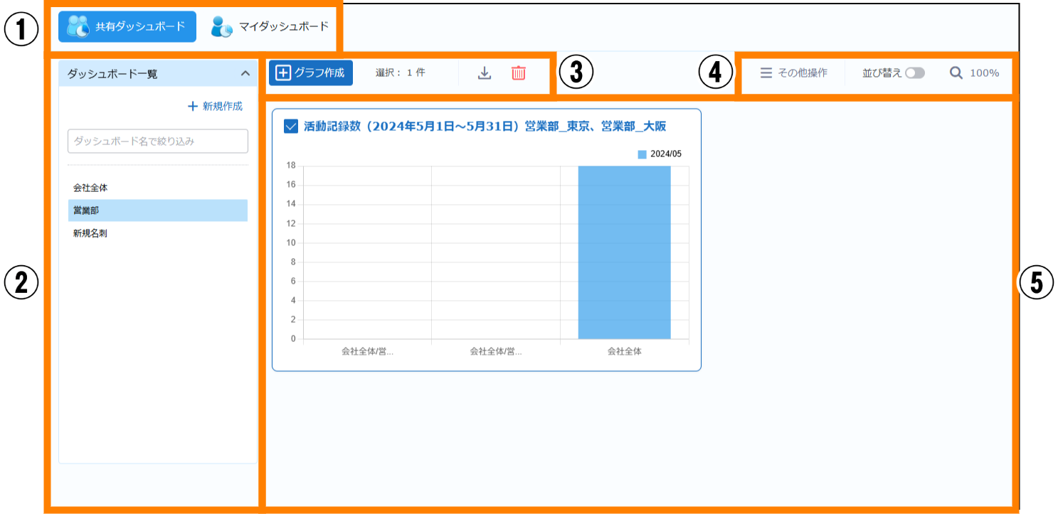 | ② | ダッシュボード一覧 | ― | |