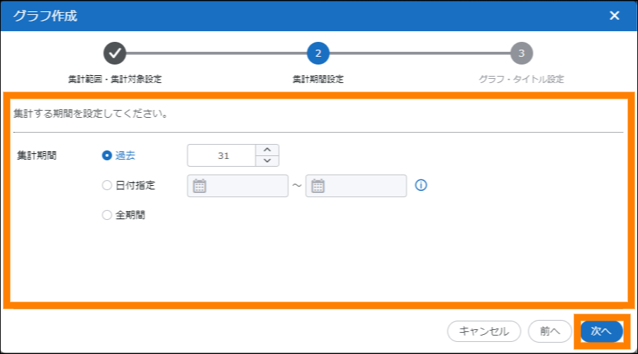 ③ 集計期間を設定し、[次へ]をクリックする。