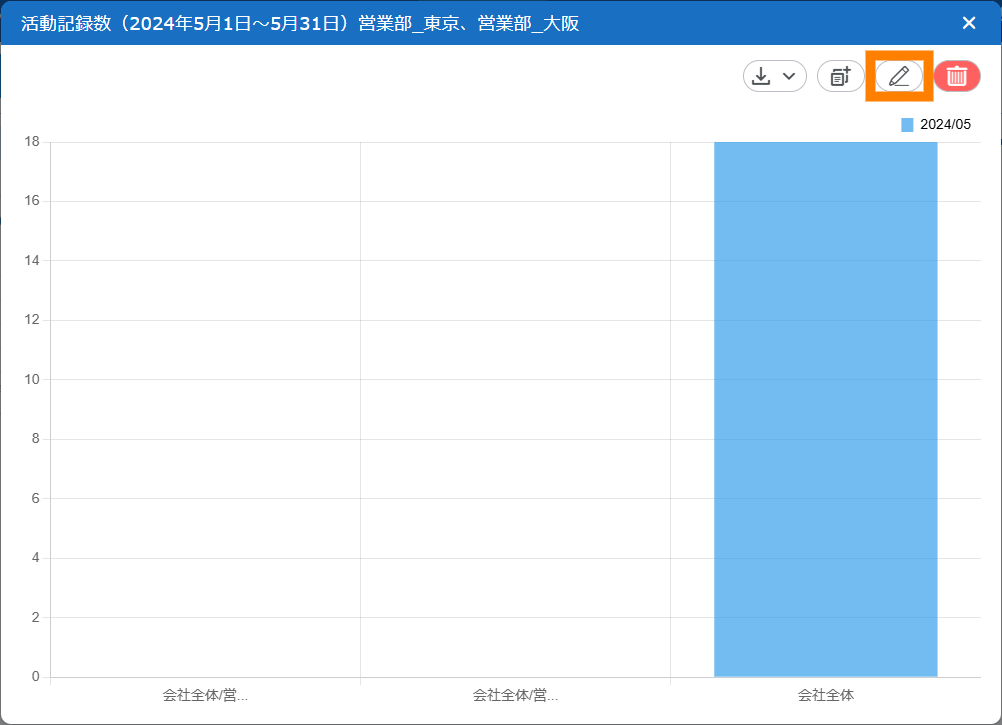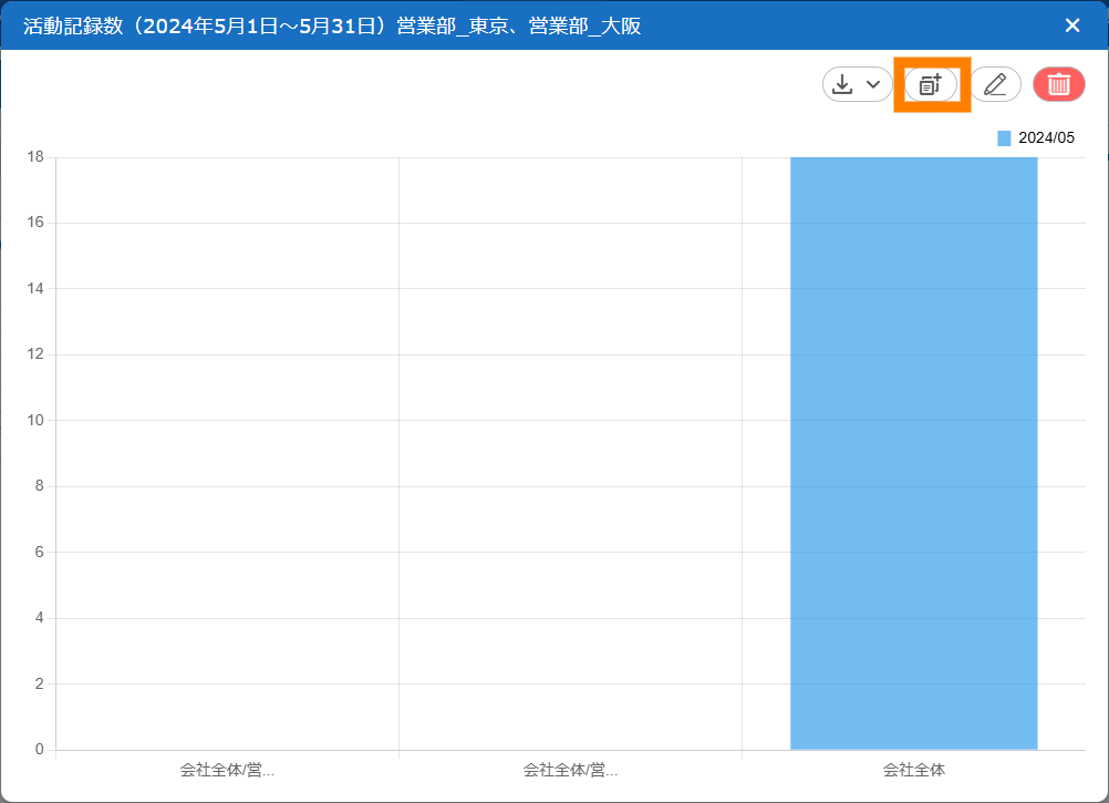 - 「集計対象」で「活動記録数」を選択すると、活動日が集計期間に一致する活動記録の数がグラフ化されます。