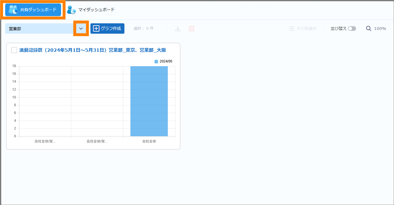 共有ダッシュボードを作成します。任意の部署やユーザーとダッシュボードを共有できます。