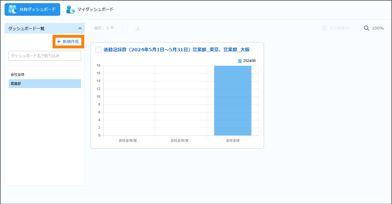 | 新規作成 | 共有ダッシュボードの作成ができます。 | 参照 | |