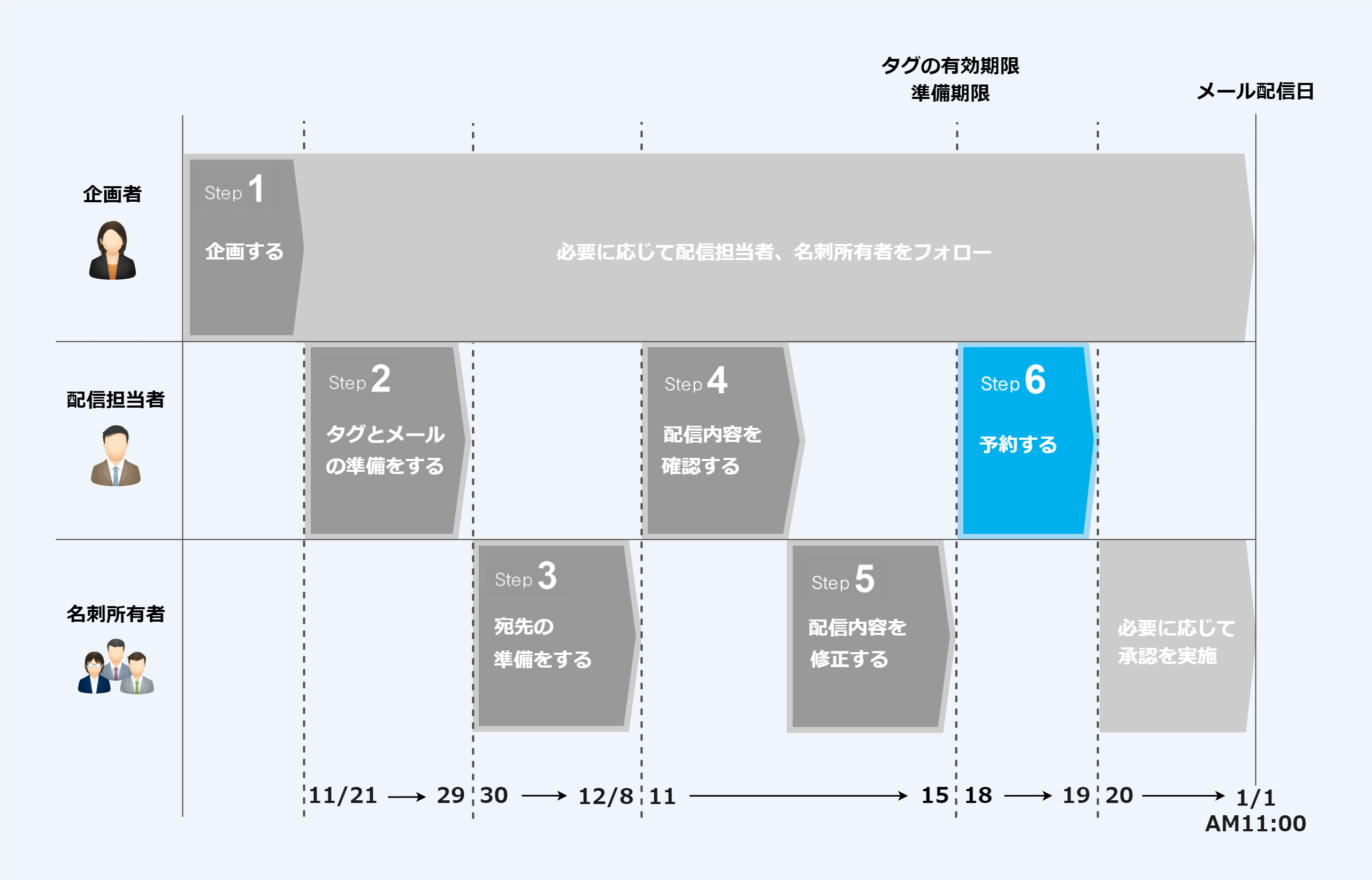 Step6では、配信するメール内容の最終確認を行い、配信の予約を行うことが目的になります。