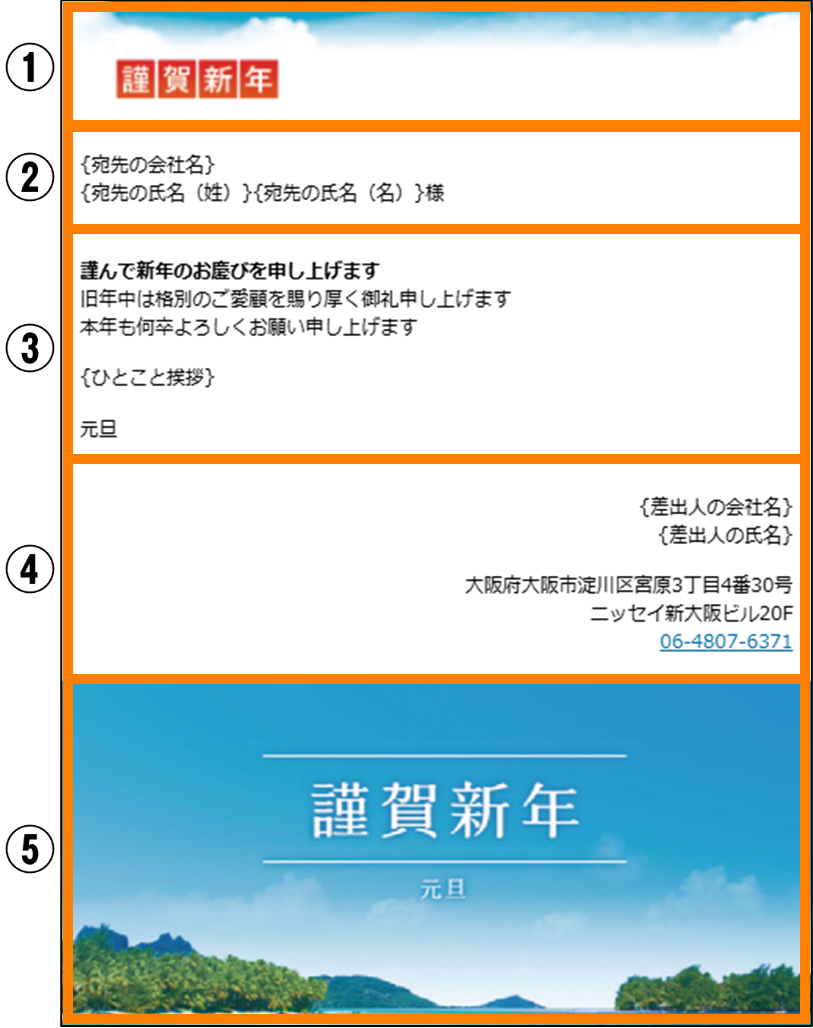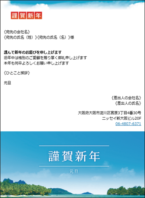 | 差し込み項目を追加 | {差出人の会社名} {差出人の氏名} |