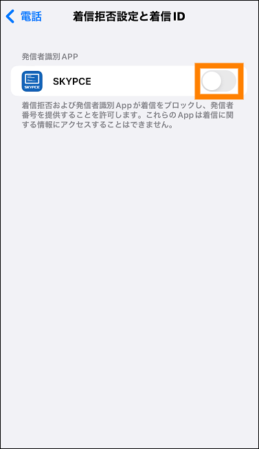 - (iOSの場合)発信者識別APPとして「SKYPCE(スマートフォンアプリ)」を許可