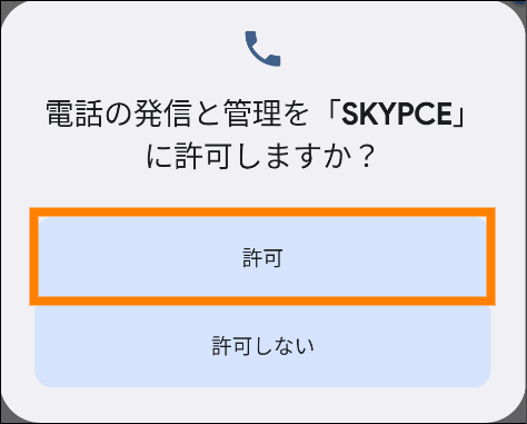 - (Android OSの場合)電話の発信と管理を「SKYPCE(スマートフォンアプリ)」に許可