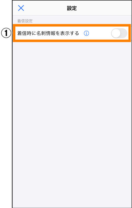 ① 「着信時に名刺情報を表示する」の