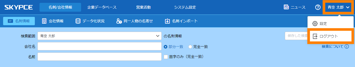 2.1.SKYPCE(名刺管理)にログイン / ログアウトする