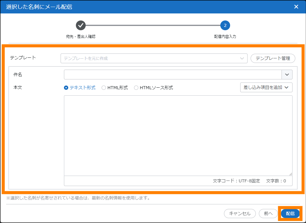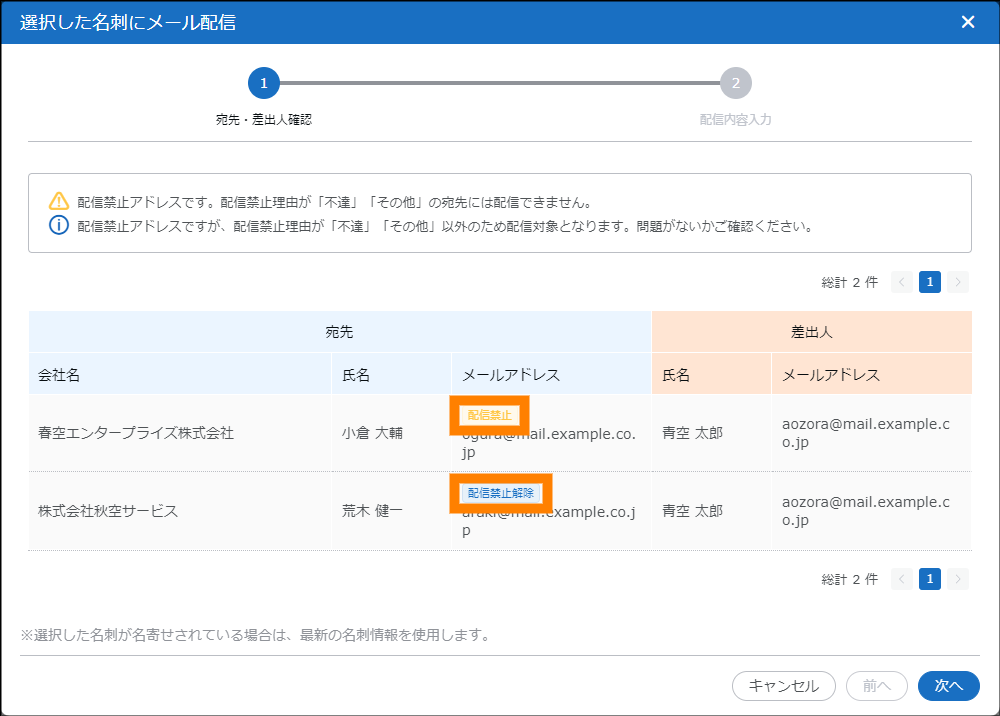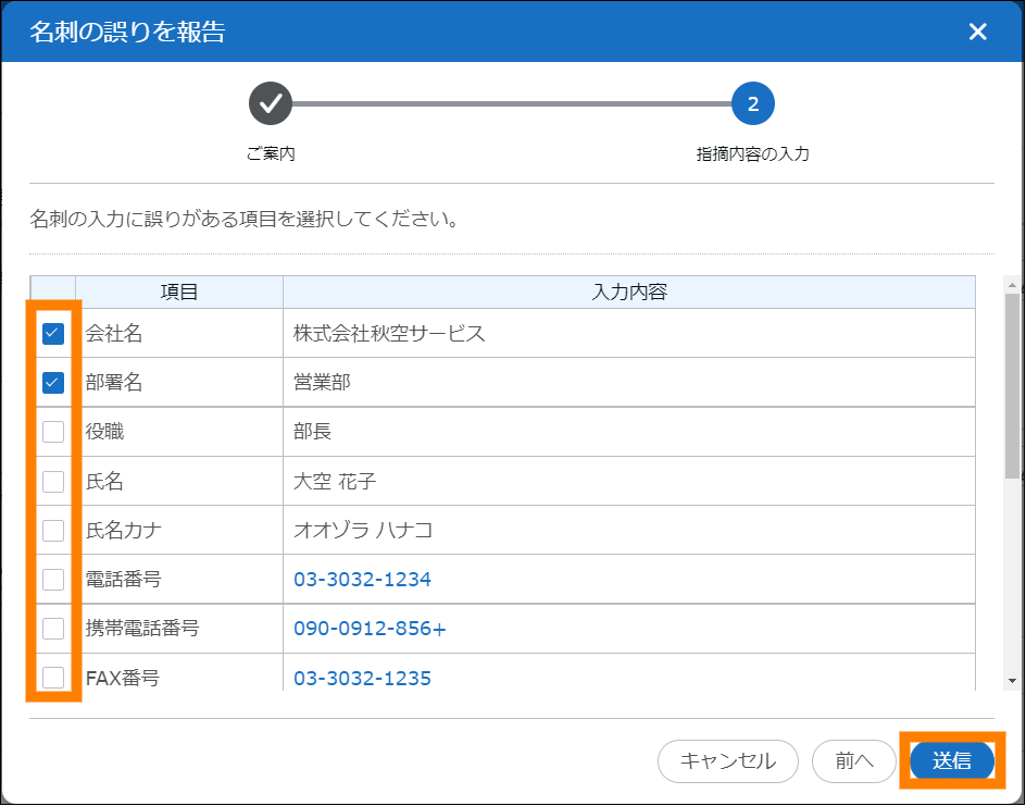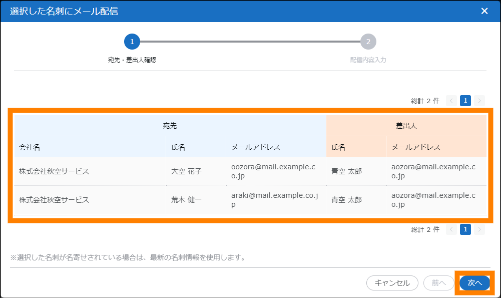 - 名刺情報の「部署」または「役職」が更新されると、名刺の所有者全員にメールで通知されます。