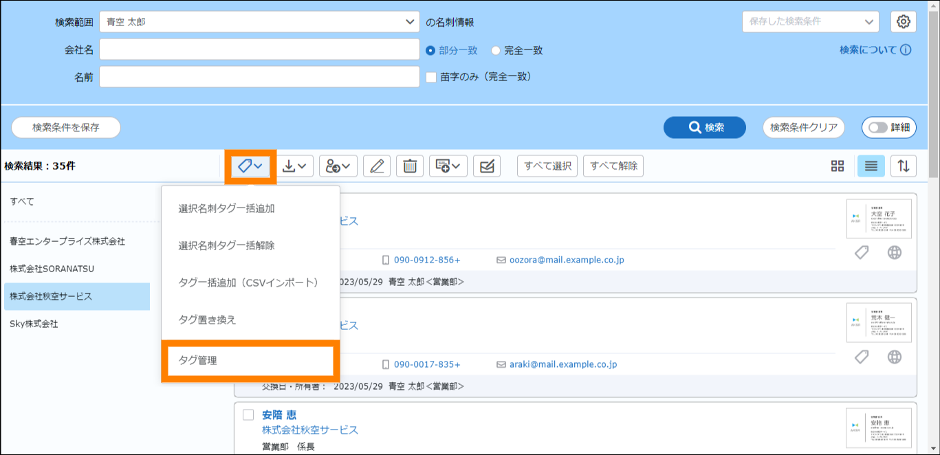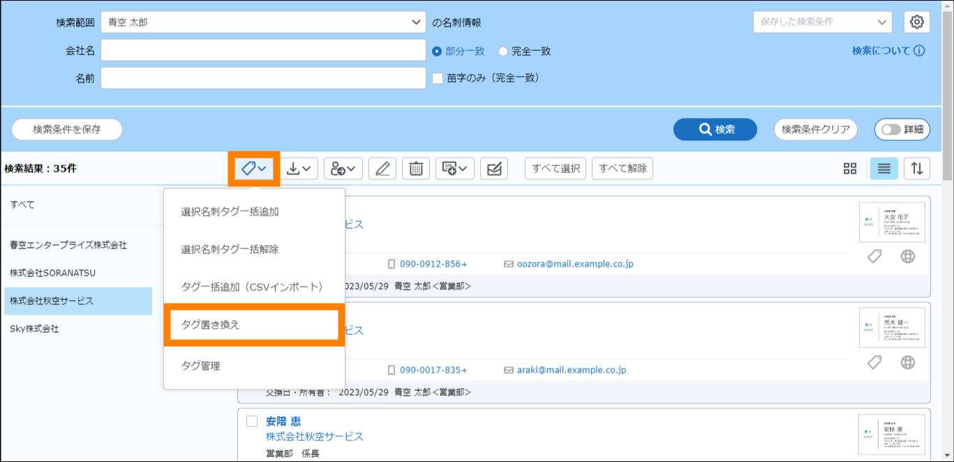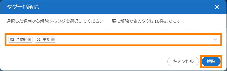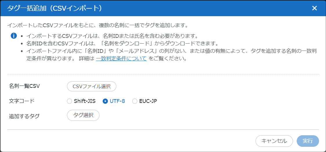 - 1つの名刺情報に複数のタグを付与する場合は、タグとタグの間をセミコロン(;)で区切ってください。