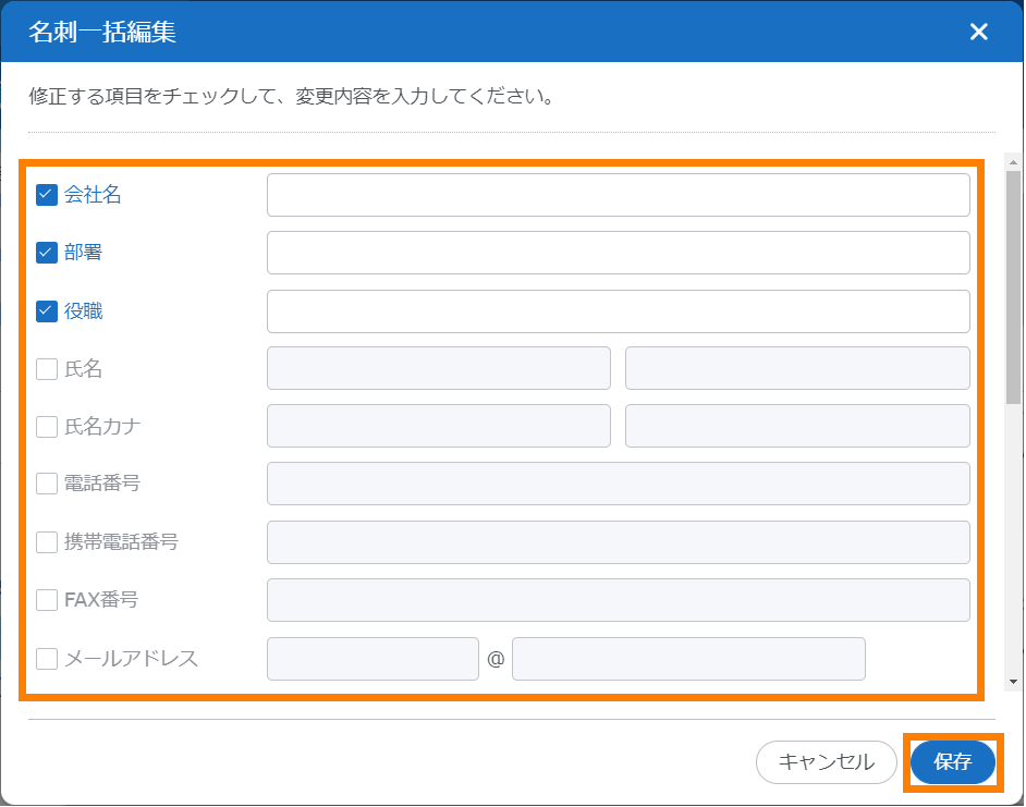 - 登録する名刺情報の必須入力項目は「名刺所有者ID」「姓」です。