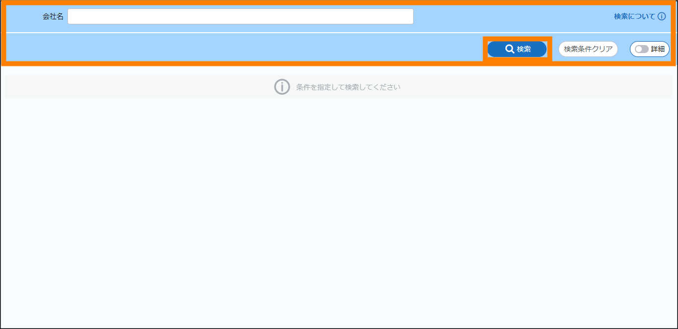 | 会社名(※1) | 入力したキーワードと一致する会社名で検索できます。追加条件として、「部分一致」「完全一致」が選択できます。 | ||