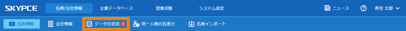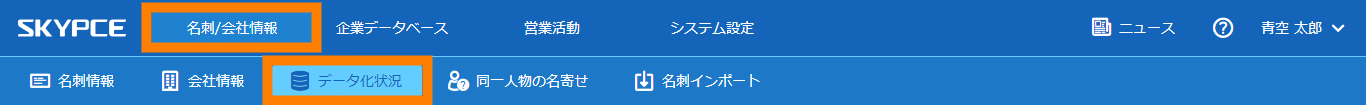 ① 「名刺 / 会社情報」をクリックし、「データ化状況」をクリックする。
