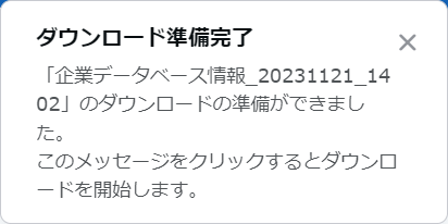 企業データベースの情報のダウンロードが予約されます。