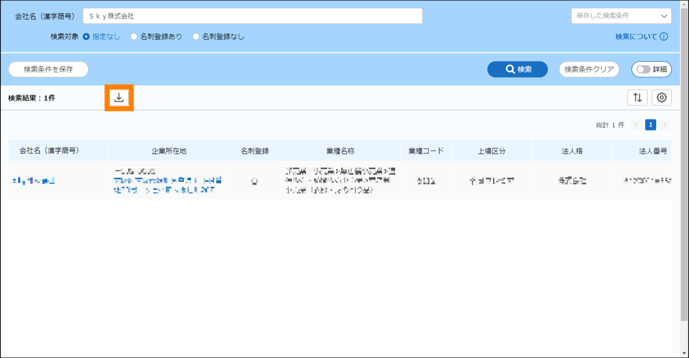- 次の条件に一致する会社の情報がダウンロードできます。