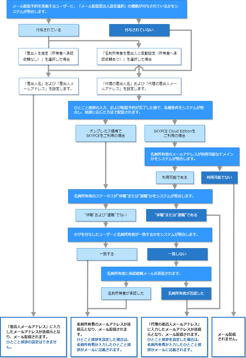 - 青字の「案内メール」にマウスポインターを合わせると、送信されるメールの差出人および、件名が表示されます。