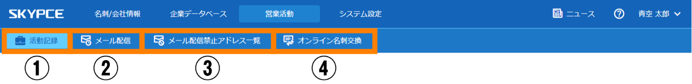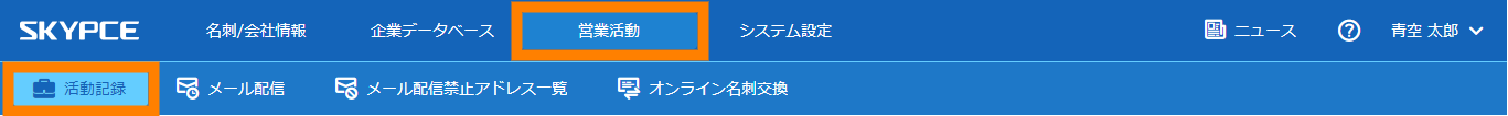 ① 「営業活動」をクリックし、「活動記録」をクリックする。