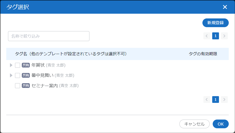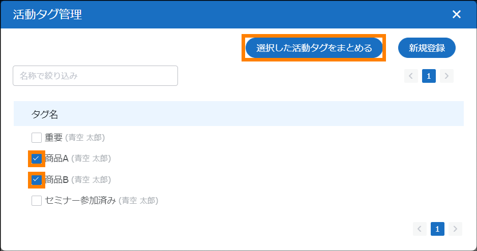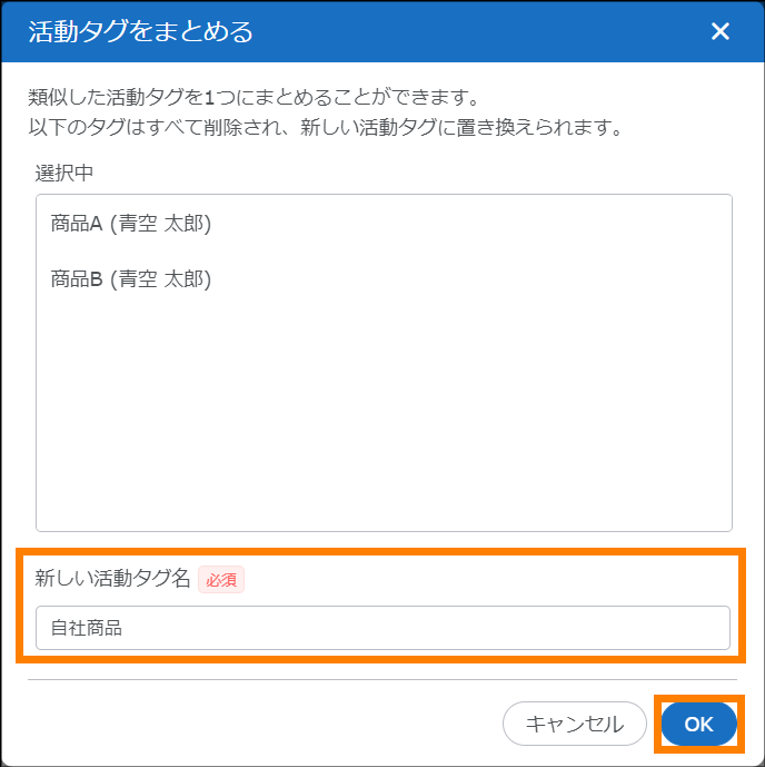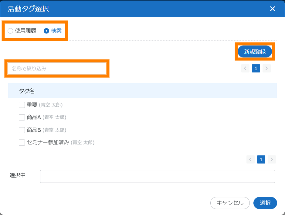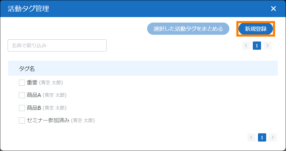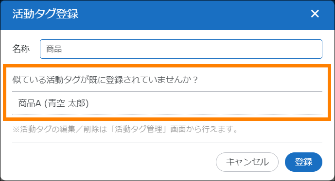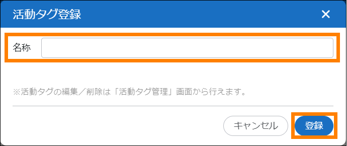 活動タグの追加、編集、削除などができます。 | 参照 | |