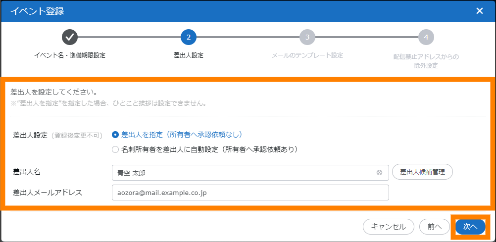 | 参加者 | 参加者の設定をします。参加者は自分を含めて最大50名設定できます。 | |