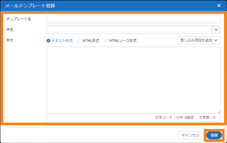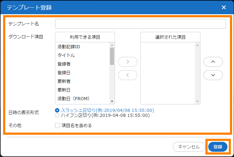 | 登録日 | 登録日を条件に追加できます。日付(期間)で指定してください。 | ||