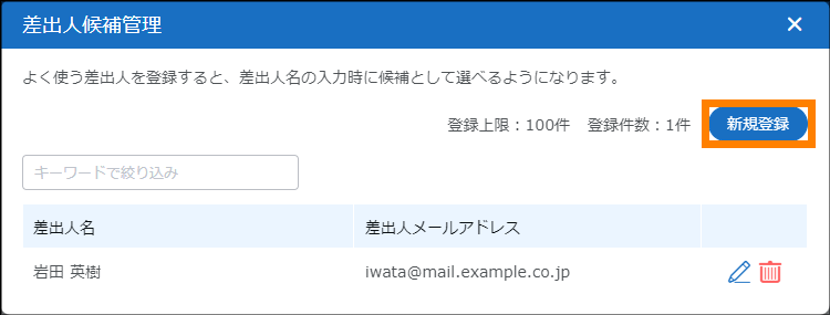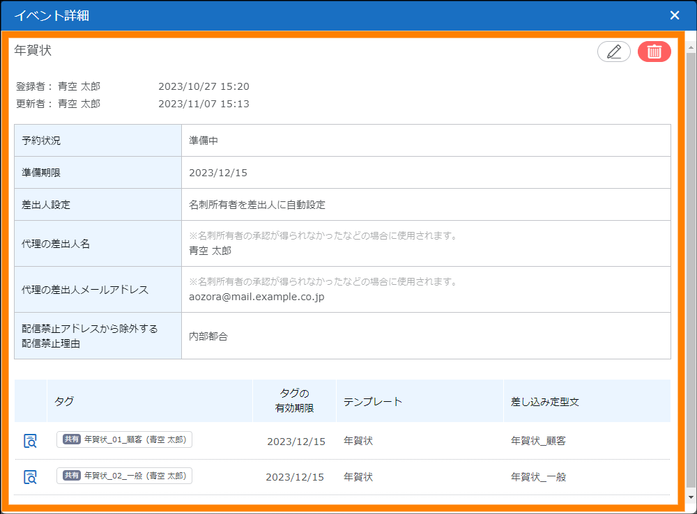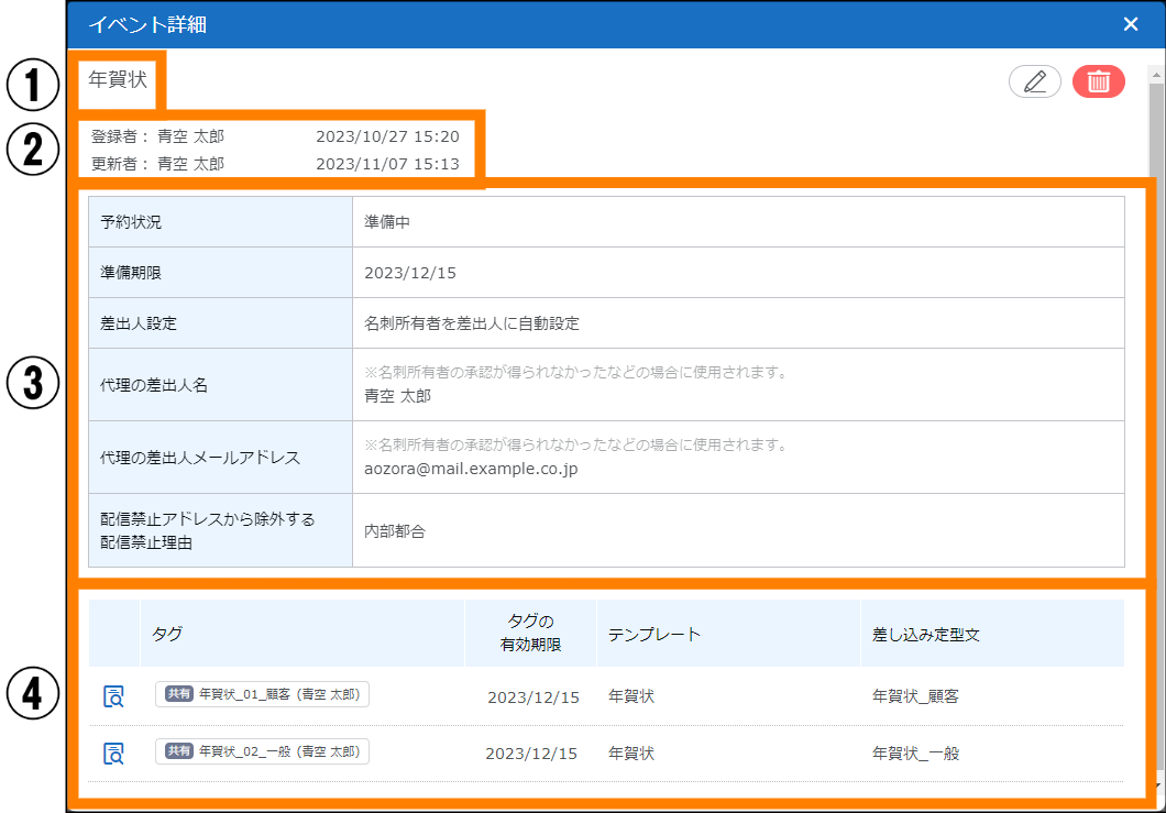| ② | 登録者 | 登録者の氏名および、登録した日時が表示されます。 |
