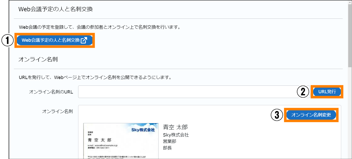どちらの場合でも参加者にオンライン名刺交換の操作を説明する場合は、別冊『Web会議(オンライン名刺交換)の参加依頼が来たら』 (※1)のURLを案内してください。
